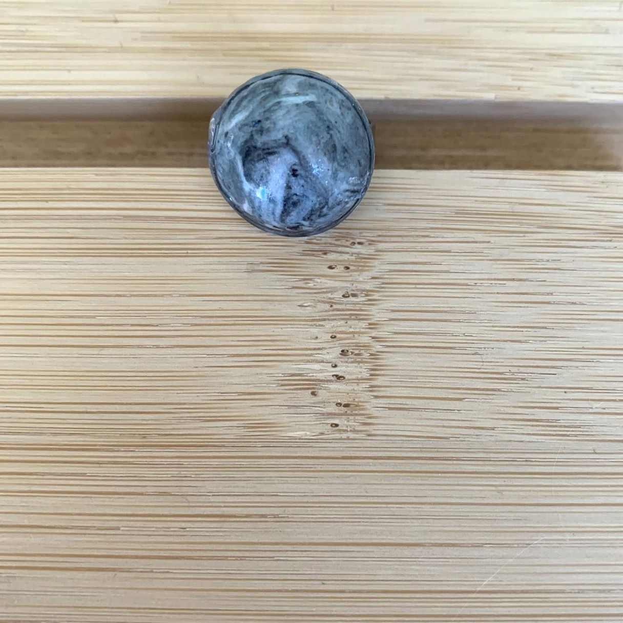 Bague grise : cabochon goutte, nuances de blanc, noir, vert.