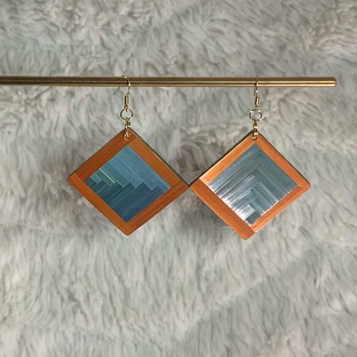 Ces boucles en marqueterie de paille verte et orange ont été réalisée avec de la paille de seigle, un artisanat traditionnel qui remonte à plusieurs siècles.