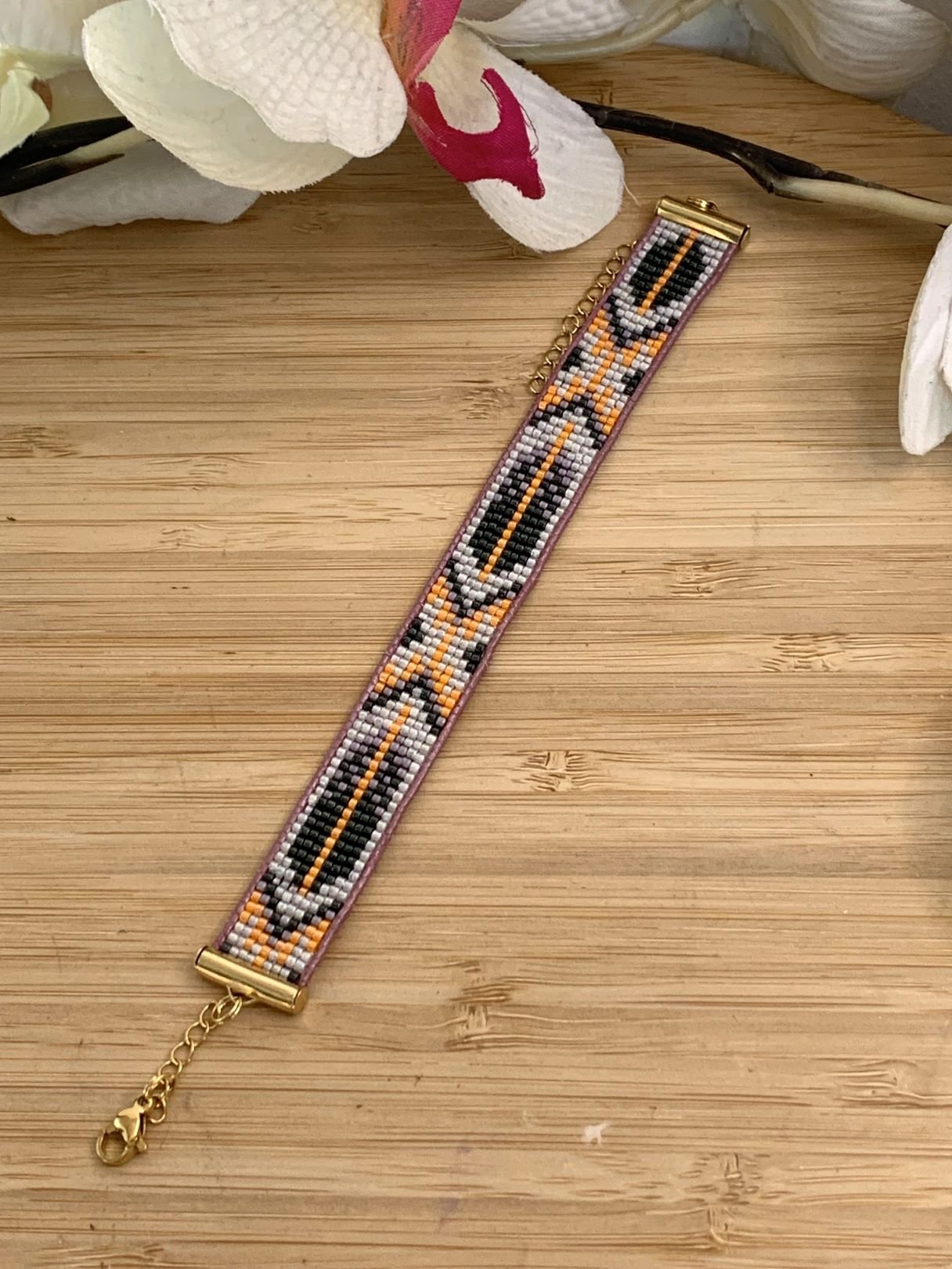 Bracelet en perles Miyuki tissé à la main -orange et noir