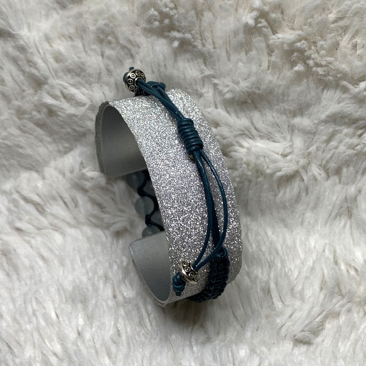 Bracelet réglable avec son fermoir en cuir coulissant: de 15,2cm à 23,5 cm