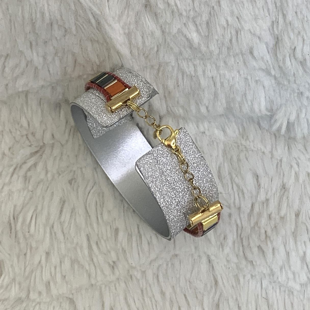 Ce bracelet en perles Tila, elles sont fabriquées au Japon, elles se distinguent par leur forme régulière et leur durabilité exceptionnelle. Les perles Tila, plates et carrées, sont idéales pour le tissage.