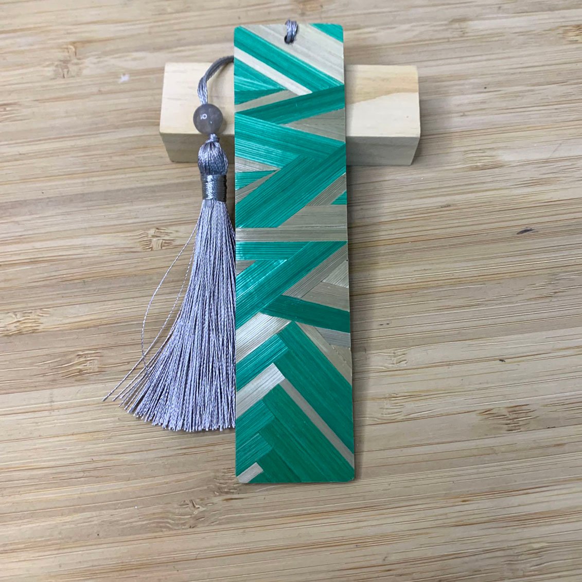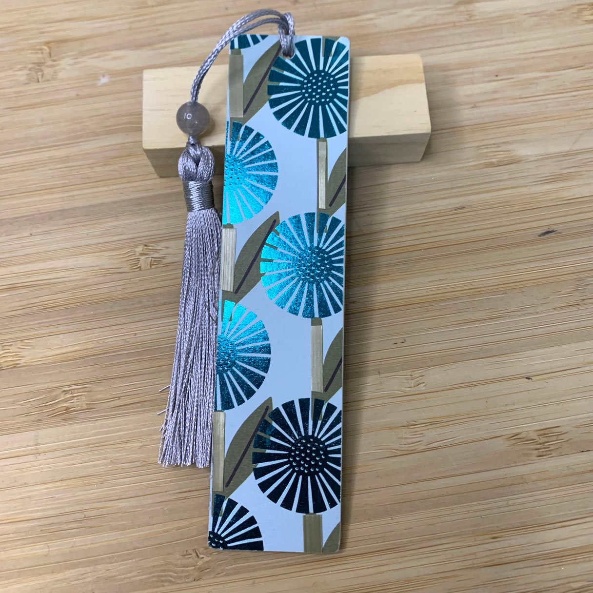 De l’autre, laissez-vous séduire par la douceur d’un papier floral aux motifs de fleurs stylisées. Ce contraste entre la brillance de la paille et la matité du papier fait de ce marque-pages un véritable objet d’art à deux facettes.