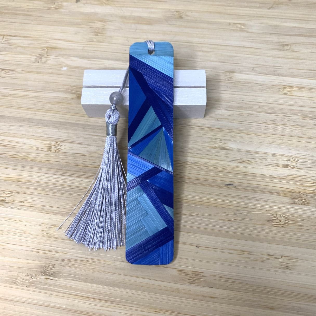 Ce marque-pages artisanal n’est pas un simple accessoire : c’est une pièce d’artisanat d’art. J’ai utilisé la paille de seigle, une matière naturelle aux reflets naturellement irisés, pour créer ce décor géométrique. Chaque brin de paille a été fendu, aplati et collé minutieusement pour révéler cette brillance que seule la main de l’artisan sait capturer.