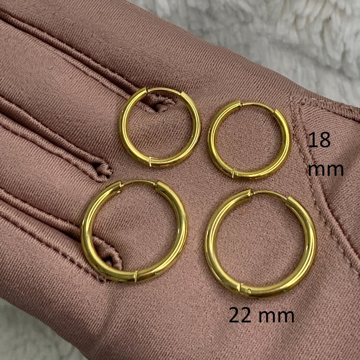 - Fixation : Créoles en acier inoxydable 304L de 18mm dorées or 18K ( certification européenne Reach) ou argentées