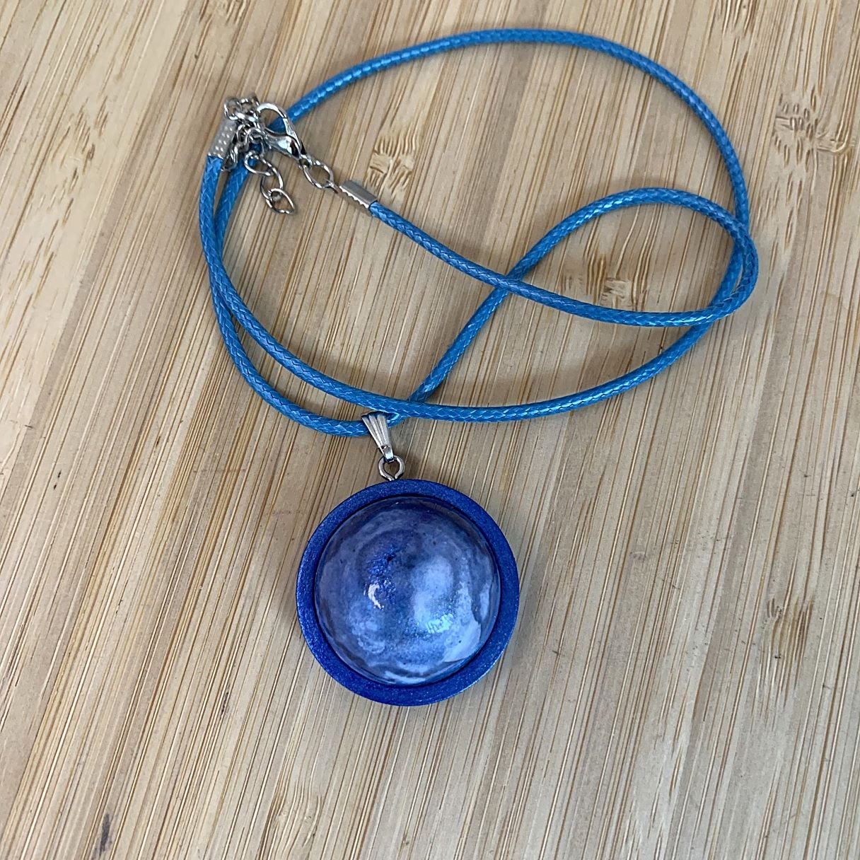 Pendentif rond bombé bleu nuit- Collection Minérale